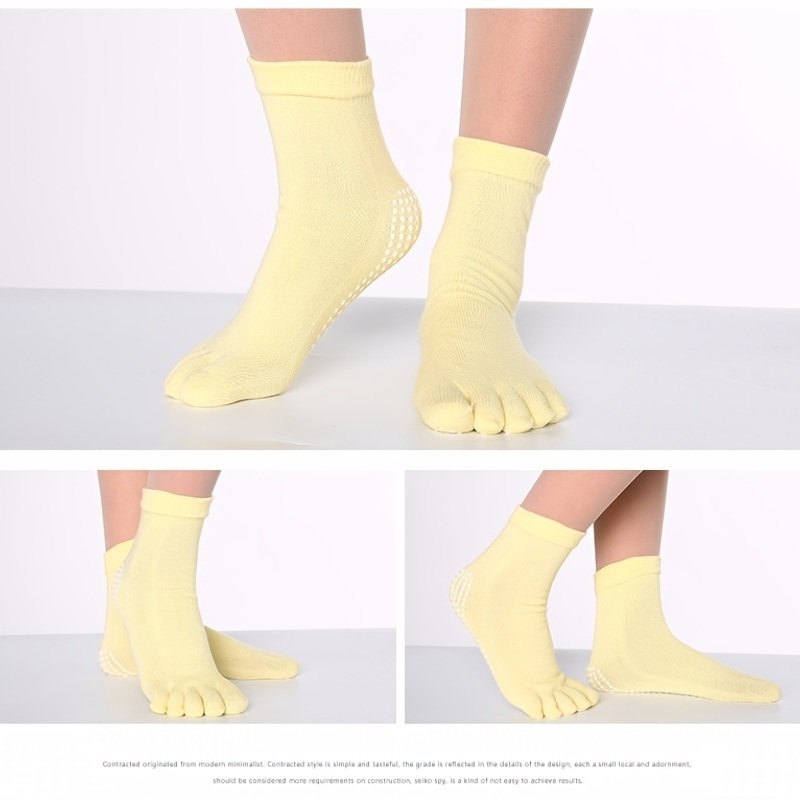 Home > 1pair Rainbow Color Non-slip Towel Bottom Yoga Socks, Cozy 5 Toes Split Knitted Calf Crew Socks, Women's Yoga Socks