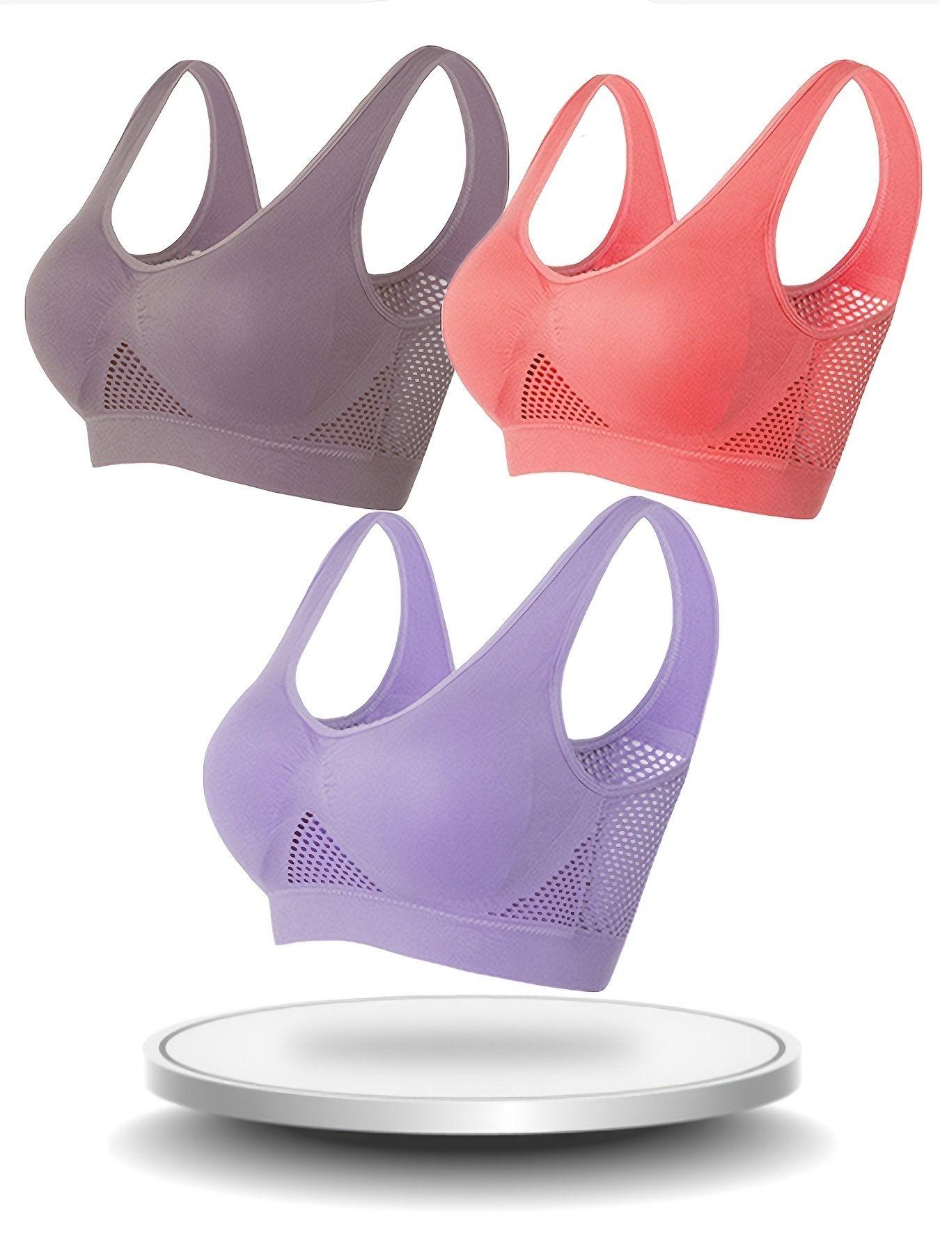 Home > 3 Pcs Breathable Solid Eyelet Mesh Hole Vest Sports Bras, Plus Size Non-steel Running Yoga Bras, Women's Lingerie & Underwear